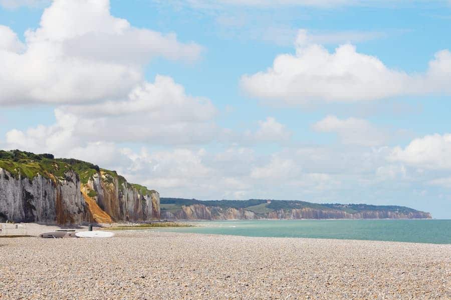 A l’opposé, Varengeville-sur-Mer s’ouvre sur des criques au pied des falaises (Vasterival, Petit-Ailly…), dans un cadre naturel. Les accès demandent de la prudence et de bien vérifier les marées Vérifiez bien les marées pour accéder à la plage de Varengeville-sur-Mer et profiter du littoral normand. Récompense au bout : un cadre sauvage, parfait pour marcher, respirer et photographier la côte. À combiner avec la visite de l’église Saint-Valéry et du cimetière marin. Distance depuis notre camping, 10 km.